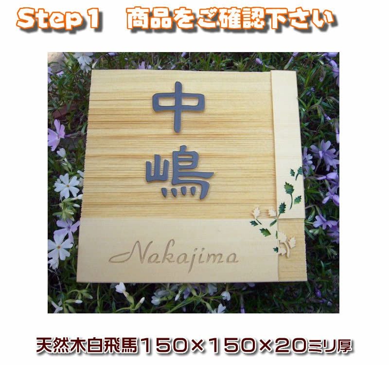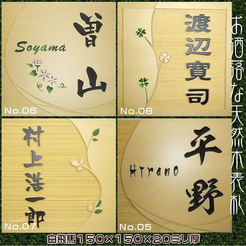 職人手作り白飛馬材のデザイン表札150×150×20mm厚