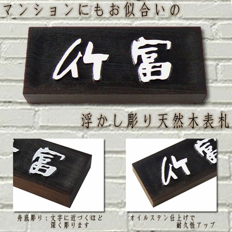 ●天然木(欅・ケヤキ)材をオイルステイン加工した浮かし彫り表札。
