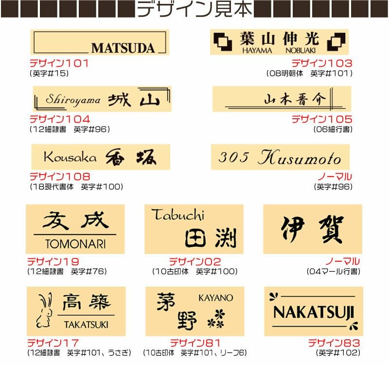 ※見本写真:デザイン230 書体09 細明朝体(西内)英字#096(Nishiuchi)