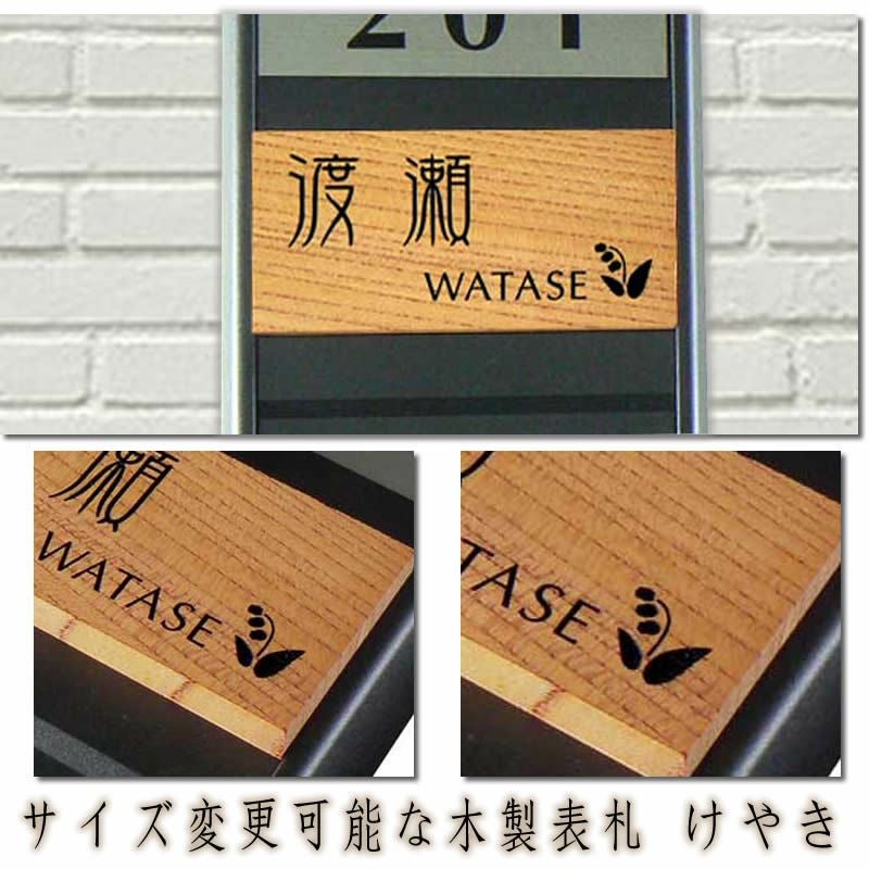 天然木製マンション表札【けやき材・125平方センチ以内・13ミリ厚・彫り込み仕上げ】両面テープ付(+550円でマグネット仕様)1mm単位でサイズ自由変更!