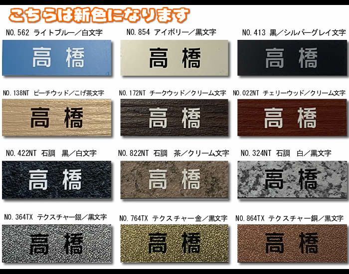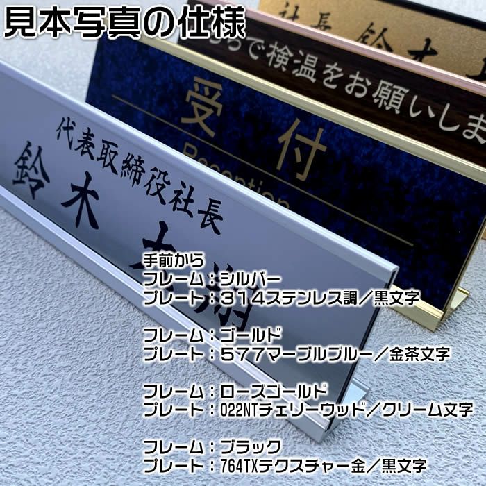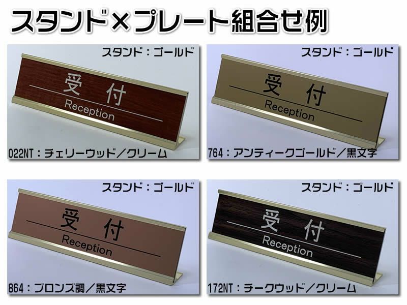 スタンドは4種・プレートはステンレス調や木目調、豊富なデザイン、210種以上の書体から作成