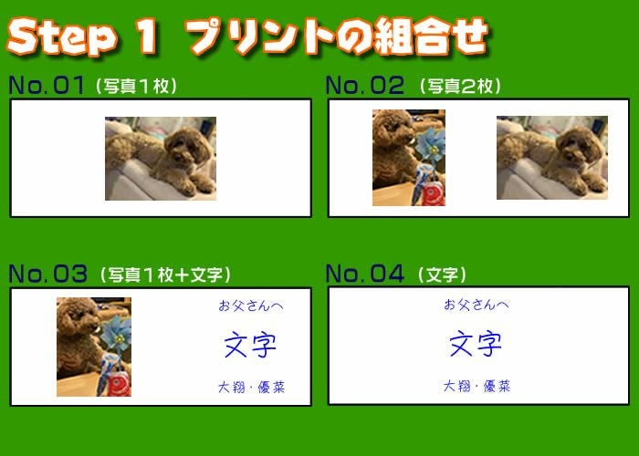 ・Step2のレイアウト以外でも作成は可能です。具体的に備考欄へ指示いただくかメールでイメージ図をご注文確定後にお送りください