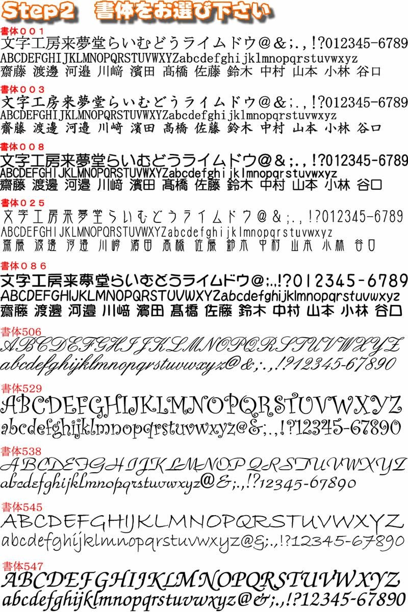 ・作成内容は『注文を確定する』ボタンの画面にある備考欄【文字加工商品はこちらに作製内容をご記入下さい】に記入下さい。