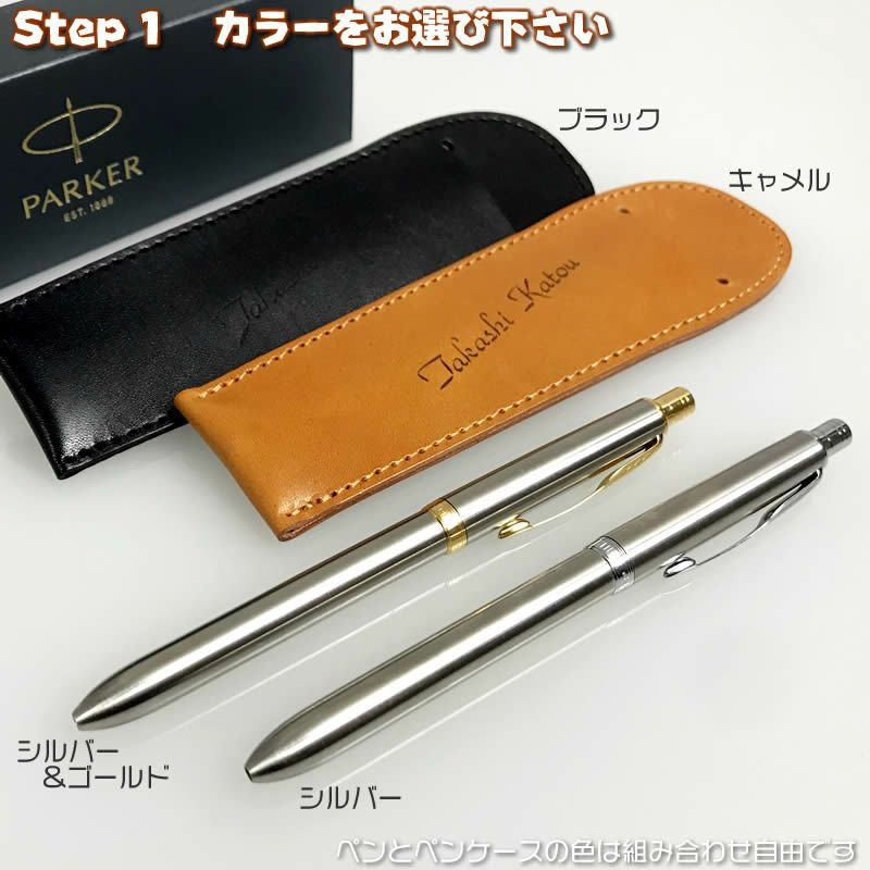 PARKER製ボールペン&本革製名入れペンケース。
