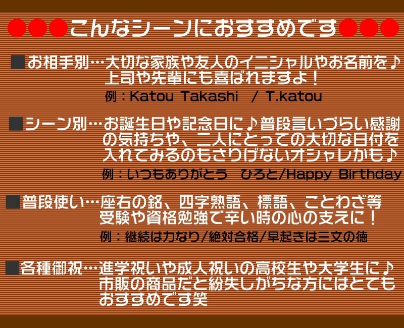 作成内容は『注文を確定する』ボタンの画面にある備考欄【文字加工商品はこちらに作製内容をご記入下さい】に記入下さい。
