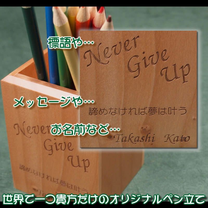 ●レーザー加工でお名前やメッセージ等を彫り込んだ、オリジナル名入れ木製ペン立て。
