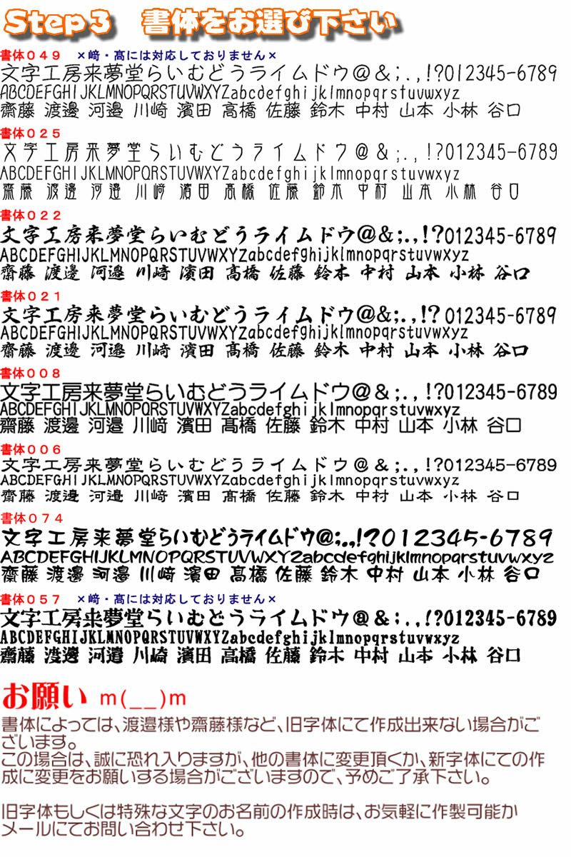 ●作成文字は[表札・千社札・名札等の文字加工商品は こちらに作製内容を御記入下さい ]へご記入下さい。