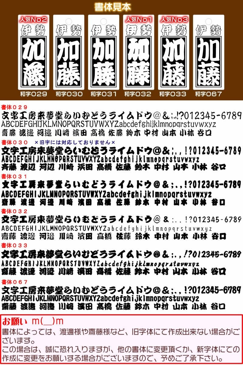 旧字体もしくは特殊な文字のお名前の作成時は、お気軽に作製可能かメールにてお問い合わせ下さい。