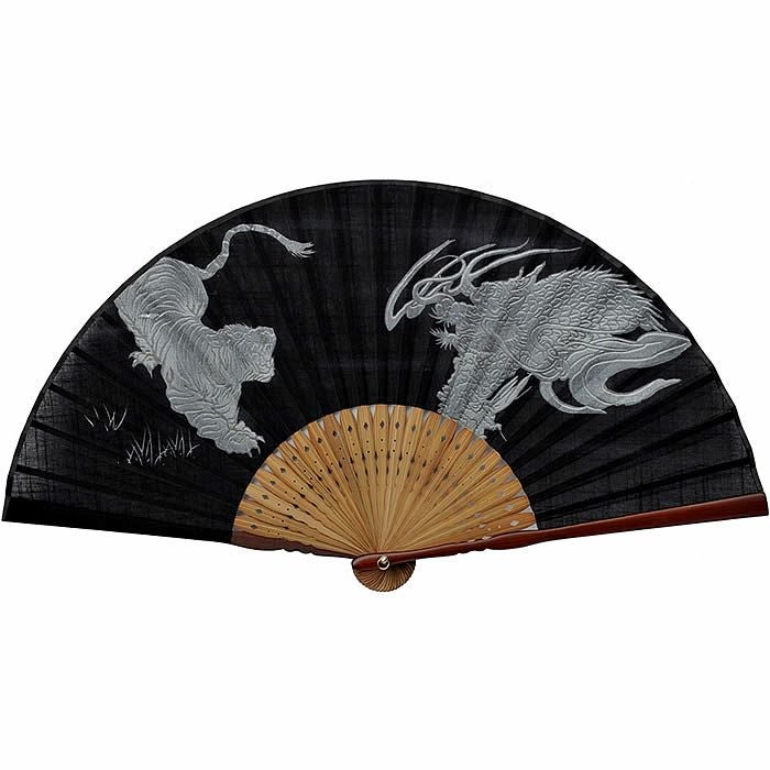 3. 和柄布扇子 男性用【虎と獅子】23cm61001-126010[父へのお中元/ギフト/おしゃれ/外国人お土産/和柄扇子/扇子 メンズ 名入れ可能(有料)/チャーム取付可能]即日発送【ネコポス送料無料】