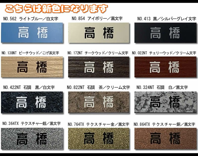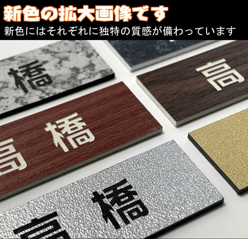 ●プレートNo314ステンレス・354アルミニウム・364ニッケル・754金・864銅・764アンティークゴールドの金属調アクリル板には光沢があります。