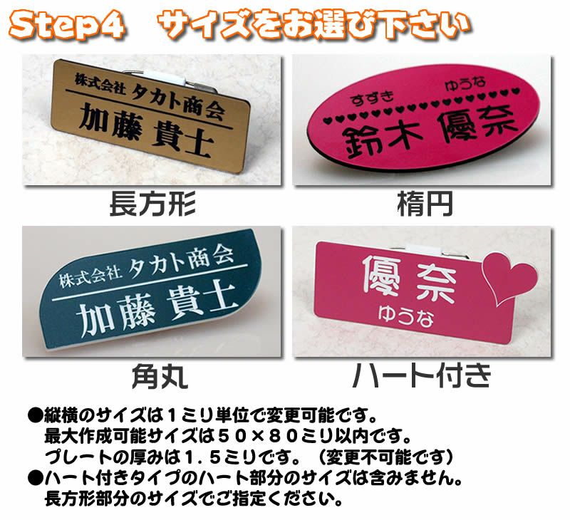 ●縦横のサイズは1ミリ単位で変更可能です。最大50×80ミリ以内。