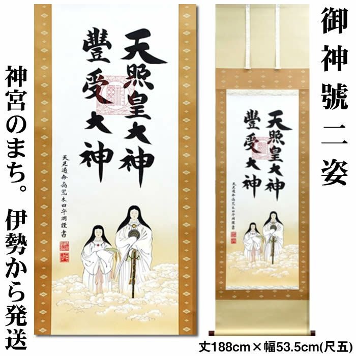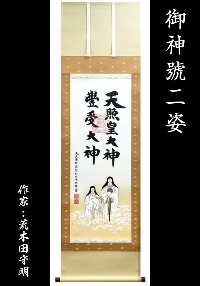掛け軸【天照皇大神/豊受大神 二姿】丈188cm×幅53.5cm(尺五)作家(荒木田守明/肉筆)88727 MIJSO