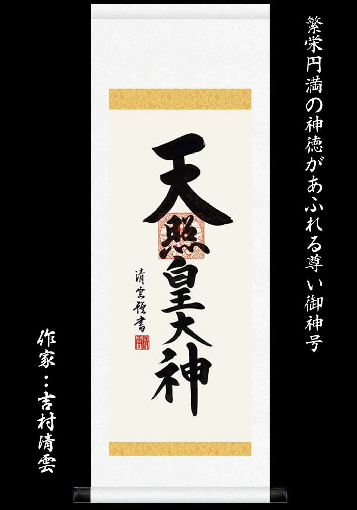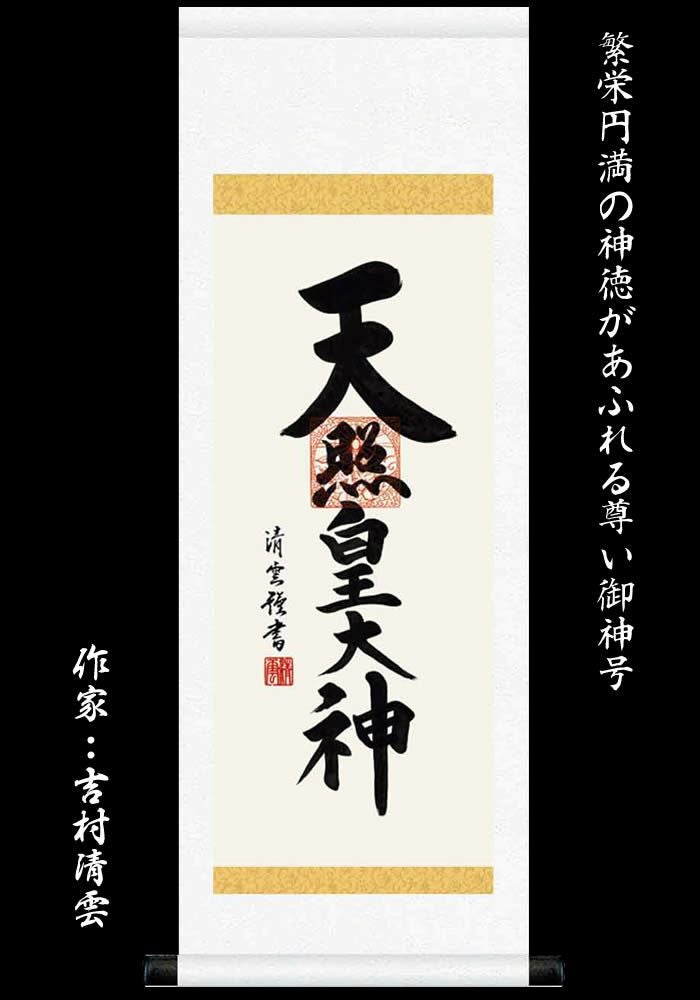 掛け軸【天照皇大神/h6-065m小】丈70cm×幅25cm(短尺)作家(吉村清雲)[天照大御神掛け軸 正月/床の間 飾り/天照大御神掛軸/天照大神/あまてらすおおみかみ/伊勢神宮/88802s]【送料無料】即納