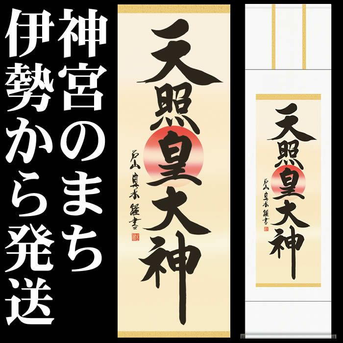 掛け軸【天照皇大神/56ME2-050】丈164cm×幅44.5cm(尺三)作家(戸山真水) [天照大御神掛け軸 正月/床の間 飾り/天照大御神掛軸/天照大神/あまてらすおおみかみ/伊勢神宮]88803【送料無料】即納