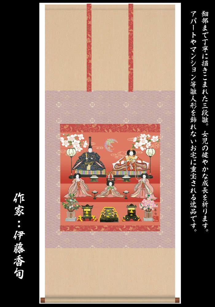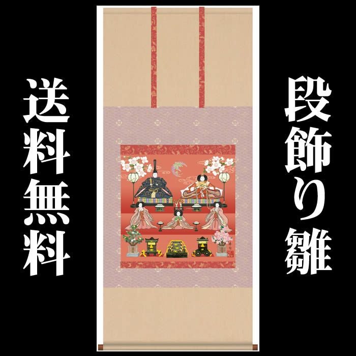 掛け軸【桃の節句:段飾り雛/F6-212】丈125cm×幅54.5cm(尺五横)作家(伊藤香旬)