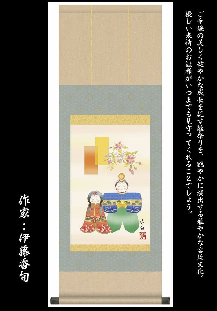 掛け軸【桃の節句:人形雛/F6-194】丈90cm×幅31cm(尺幅)作家(伊藤香旬)