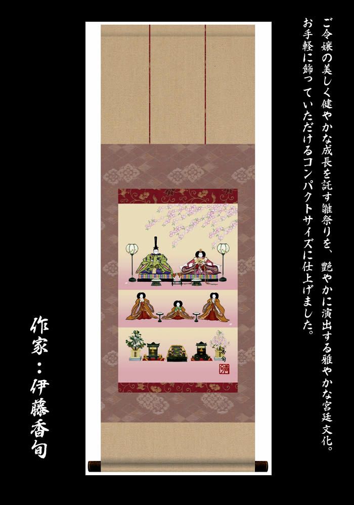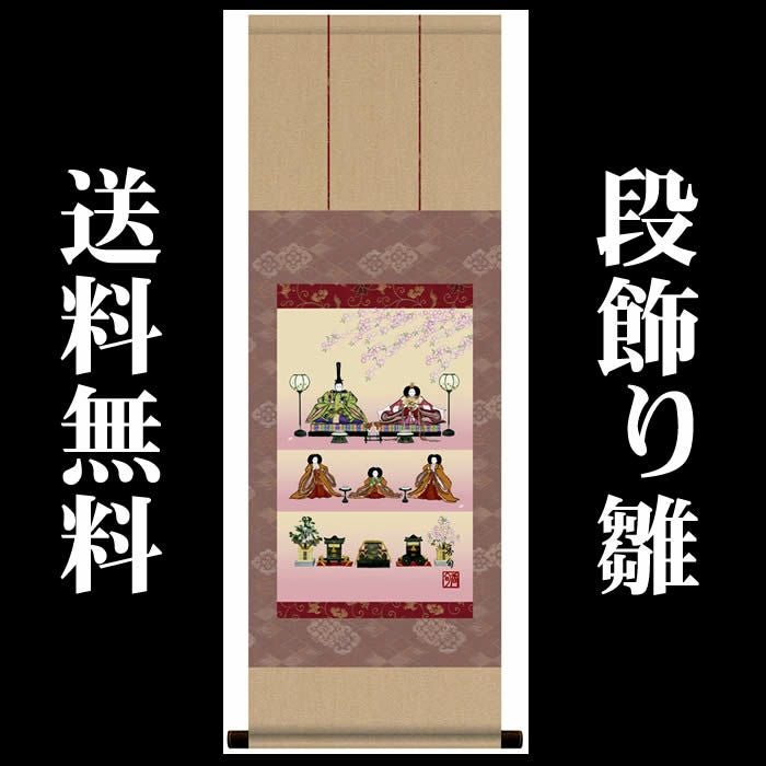 掛け軸【桃の節句:段飾り雛/F6-203】丈90cm×幅31cm(尺幅)作家(伊藤香旬)
