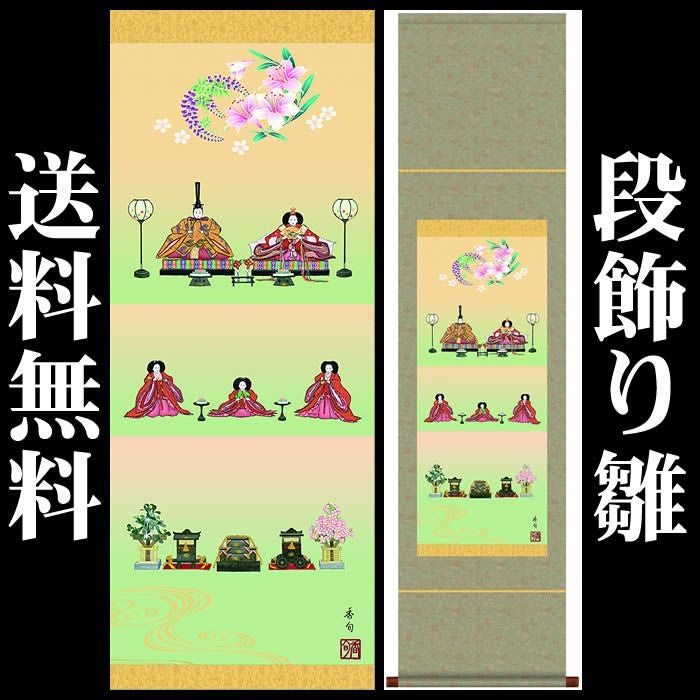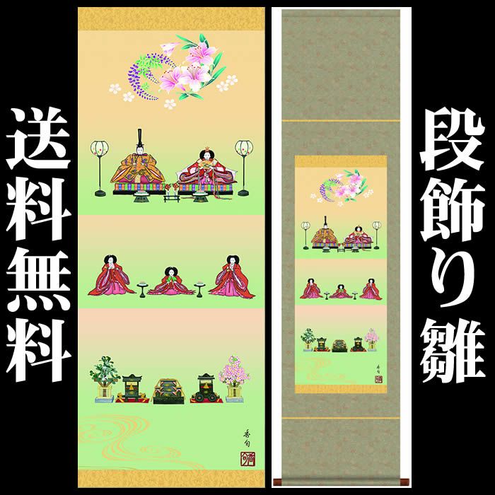 掛け軸【桃の節句:段飾り雛/SF1-158】丈140cm×幅35cm(尺幅)作家(伊藤香旬)