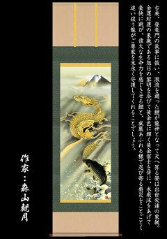 掛け軸【縁起画:霊峰昇鯉登竜門図/D5-034】丈190cm×幅54.5cm(尺五)作家(森山観月)88981 [掛け軸 正月/床の間 飾り/掛軸/縁起画/龍/竜/風水]【送料無料】即納