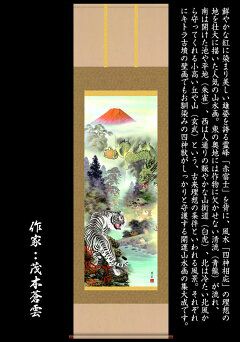 掛け軸【縁起画:開運四神龍虎図/D5-037】丈190cm×幅54.5cm(尺五)作家(茂木蒼雲)