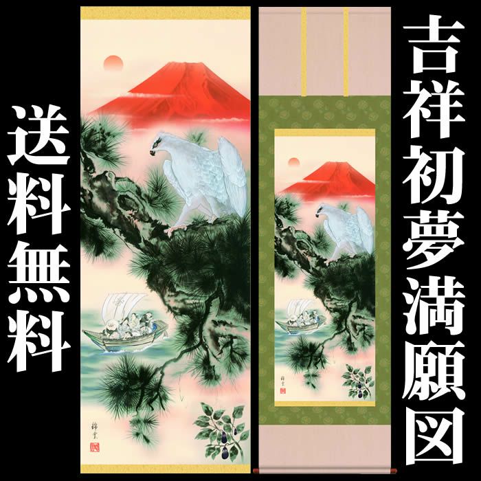 [掛け軸 正月/床の間 飾り/掛軸/縁起画/鷹/七福神/風水/赤富士]【送料無料】即納