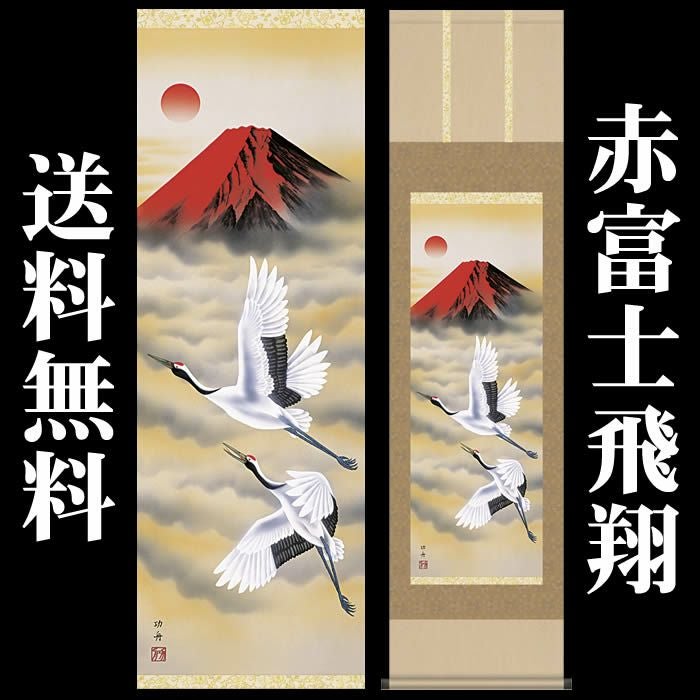 掛け軸【縁起画:赤富士飛翔/44MC1-031】丈164cm×幅44.5cm(尺三)作家(瀬田功舟)