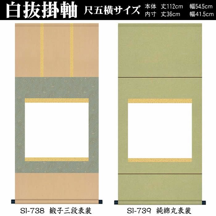 掛け軸 無地【丈112cm×幅54.5cm(尺五横サイズ)SI-738/SI-739】