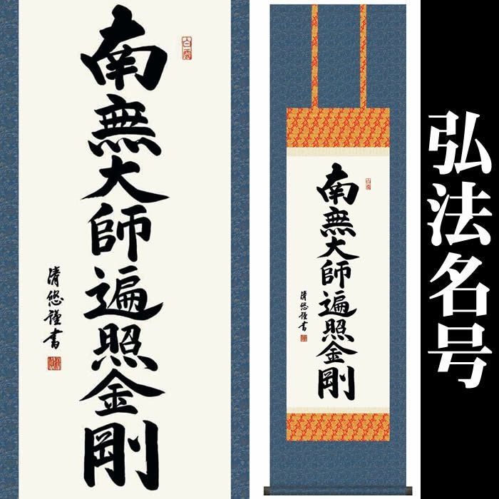 掛け軸【弘法名号:南無大師遍照金剛/H29ME2-110】作家(吉田清悠)丈164cm×幅44.5cm(尺三)[掛け軸販売/掛軸/真言宗用/お盆/彼岸/仏事/法事/命日/供養]88820a【送料無料】