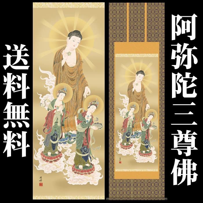 [掛け軸販売/床の間 飾り/掛軸/仏画/阿弥陀三尊佛/お盆/彼岸/仏事/法事/命日/供養]
