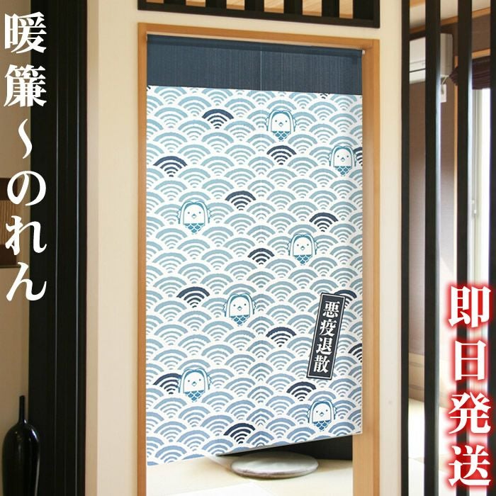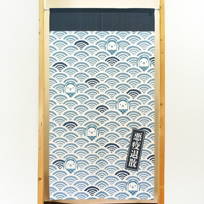 【疫病退散のれん】アマビエ様 青海波【幅85cm×長さ150cm】SD-COS 93903 [和風暖簾/和柄暖簾/外国人土産/間仕切り/テレワーク/リモートワーク背景/オンライン宅飲み背景/ロング丈のれん/疫病退散/疫病神あまびえ]【あす楽対応】【ネコポス送料無料】999045【832】