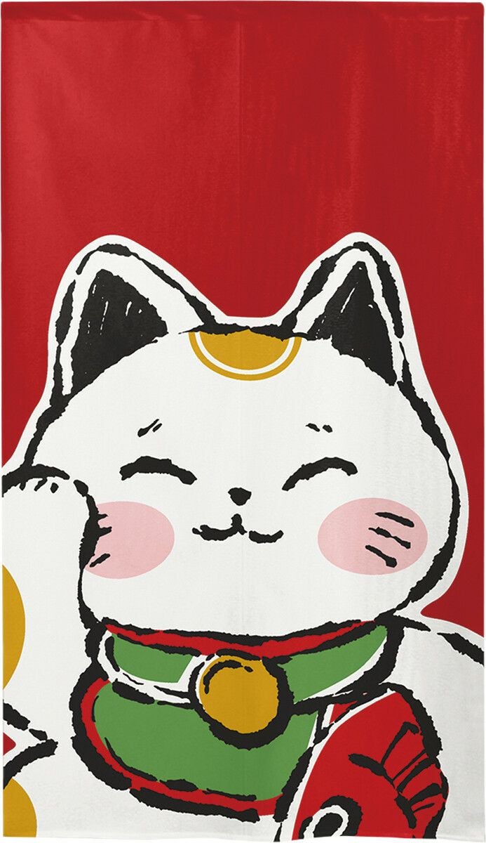 商売用暖簾招き猫【幅85cm×長さ150cm】[居酒屋/料亭/割烹/飲食業/間仕切り/テレワーク/リモートワーク背景/オンライン宅飲み背景/ロングのれん]999099b【ネコポス送料無料】