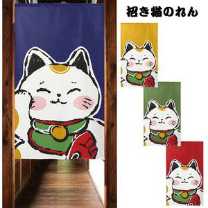 商売用暖簾 招き猫【幅85cm×長さ150cm】[居酒屋/料亭/割烹/飲食業/間仕切り/テレワーク/リモートワーク背景/オンライン宅飲み背景/ロングのれん]SD-COS999099b【ネコポス送料無料】