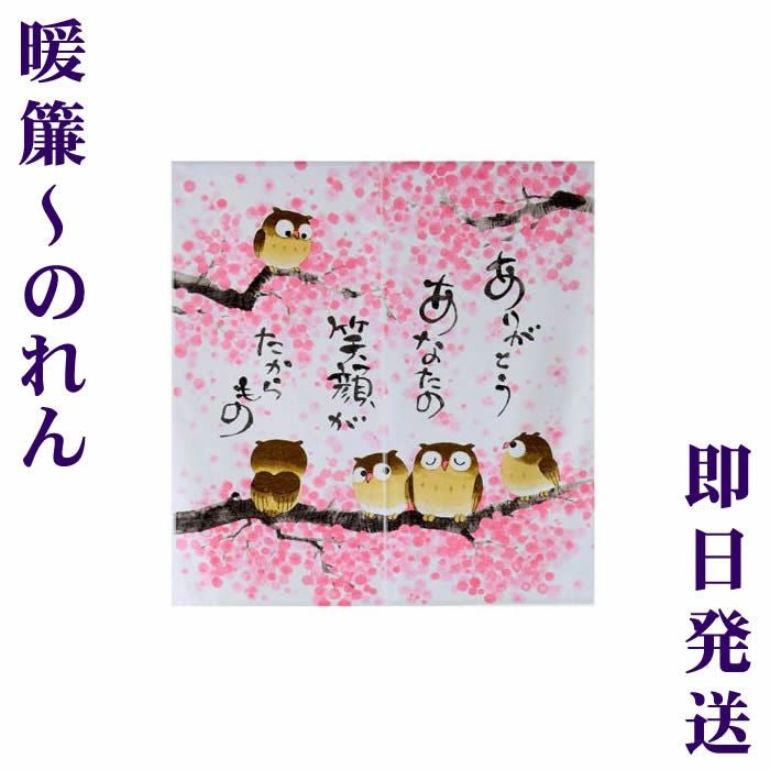 【和風のれん】「春のふくろう柄」ありがとう。あなたの笑顔がたからもの♪SD-COS10042【幅85cm×長さ90cm】[福来朗/不苦労/和風暖簾/和柄暖簾/外国人土産/間仕切り/テレワーク/リモートワーク背景/オンライン宅飲み背景]999122【ネコポス送料無料】