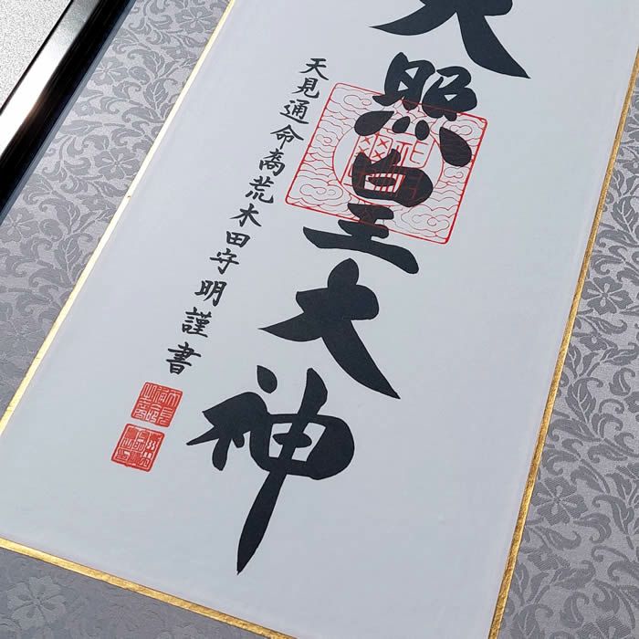 リビングや神棚周りに掛けやすい天照皇大神の額装です。