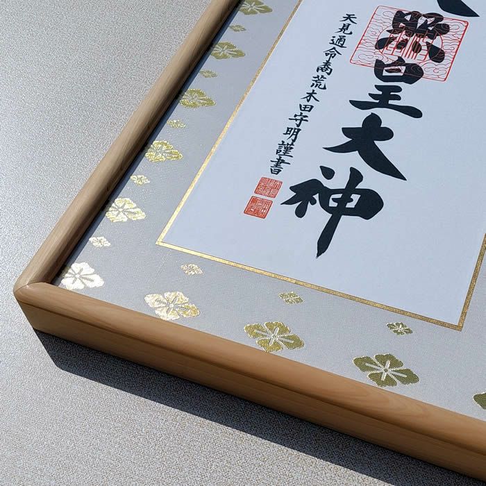 [天照大御神 年中掛け/リビング飾り/神棚飾り/縁起額/壁掛け/天照大神/あまてらすおおみかみ/伊勢神宮/神宮唐花菱紋様/尾鷲桧/尾鷲ひのき/尾鷲ヒノキ]即納