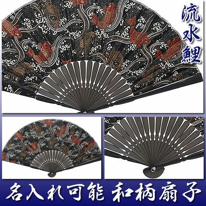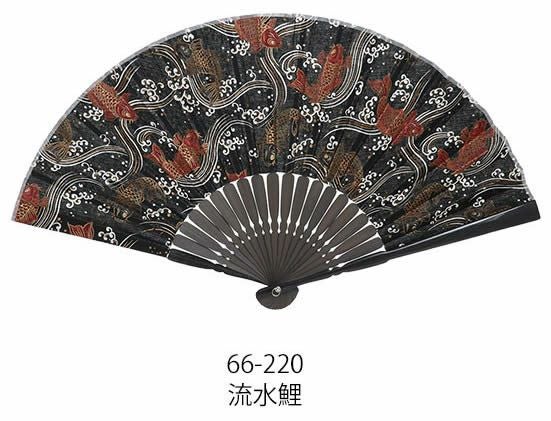 和柄扇子 男性用【流水鯉】23cm 扇面・・綿/扇骨・・竹