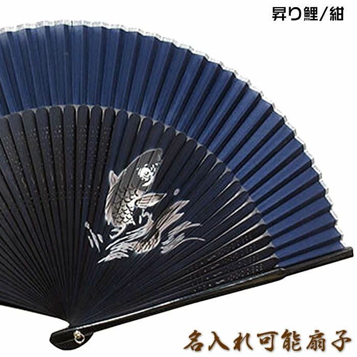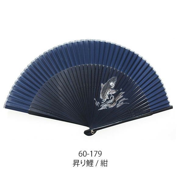 和柄扇子 男性用【昇り鯉/紺】23cm 短地シルクペンテックス。