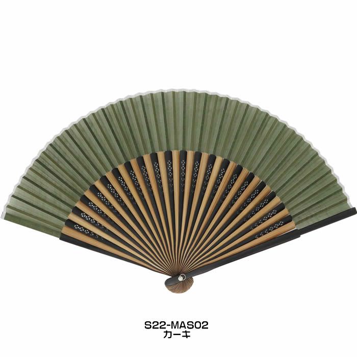 男性用【綿麻スラブ扇子】 黒・オフホワイト・茶・グレー・カーキ