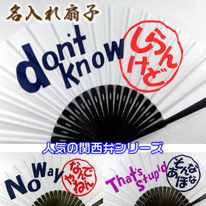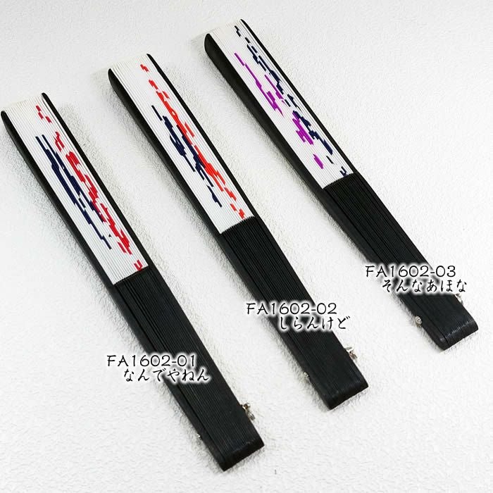 関西弁扇子【なんでやねん/しらんけど/そんなあほな】23cm扇面・・綿/扇骨・・黒竹