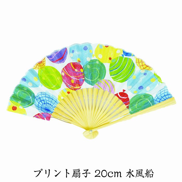 和柄扇子 女性用【水風船】20cm 58457-S19M-RA[扇面・・綿/扇骨・・竹] お祭り・贈り物に!チャーム付