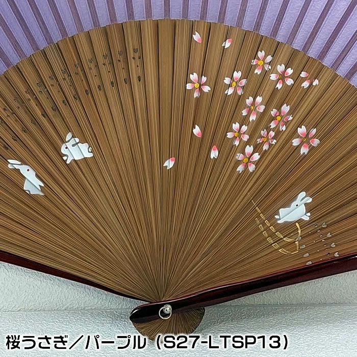 和柄扇子 女性用【桜うさぎ/紫・エンジ・黒】21cmシルクペンテックス