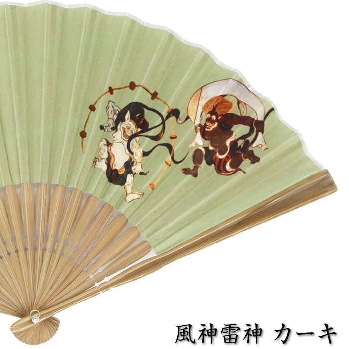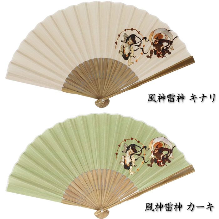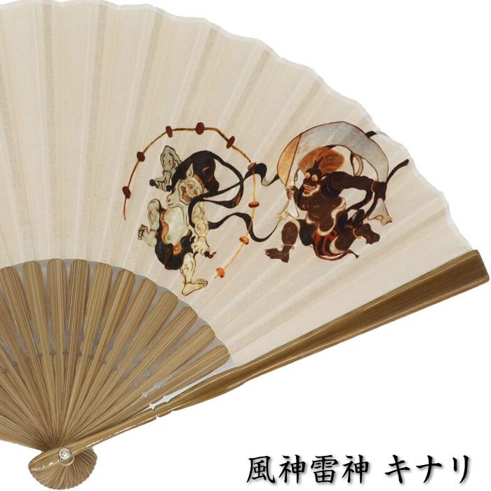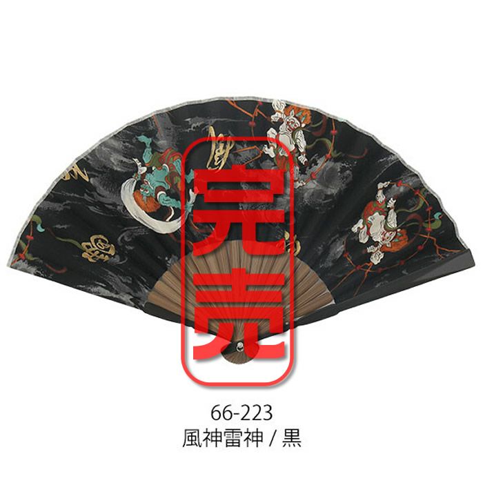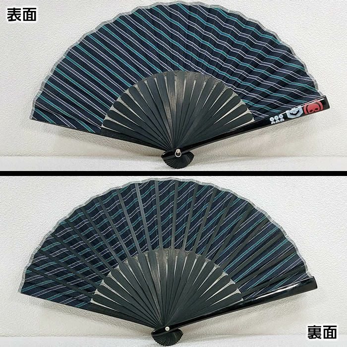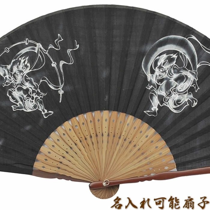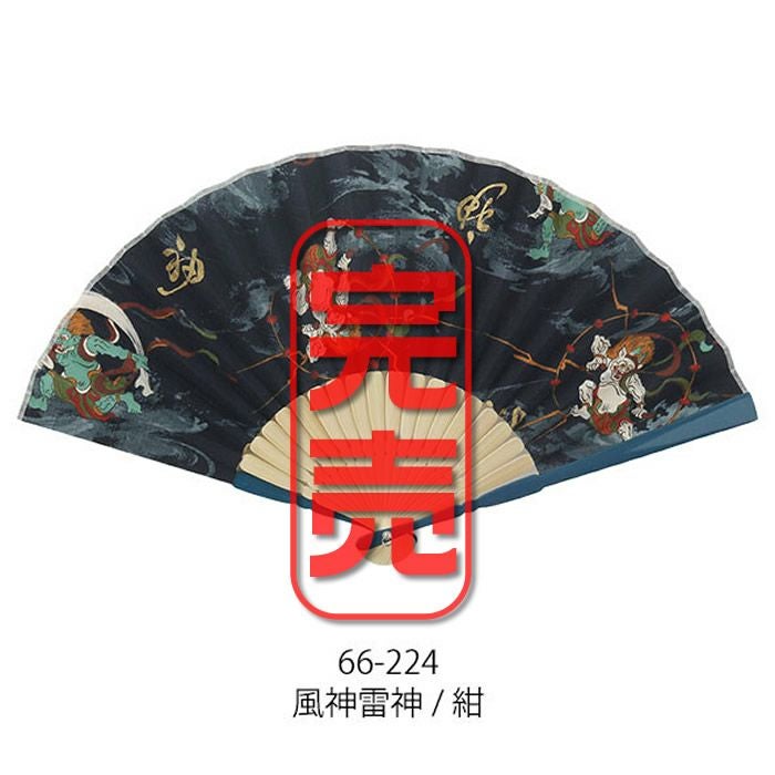 和柄布扇子 男性用【風神雷神】23cm黒・紺色 扇面・・綿/扇骨・・竹