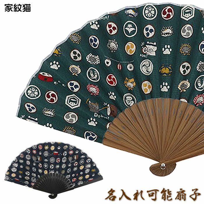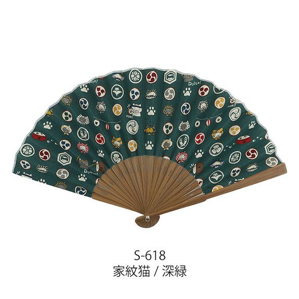 和柄扇子 男性用【家紋猫/紺・深緑】23cm 扇面・・布/扇骨・・竹