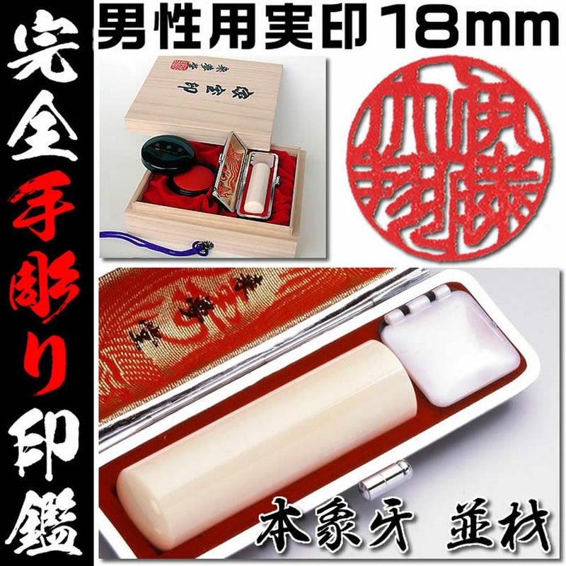 男性用印鑑 実印●本象牙並材●吉相サイズ18ミリ●開運手彫り印鑑/印鑑証明登録用