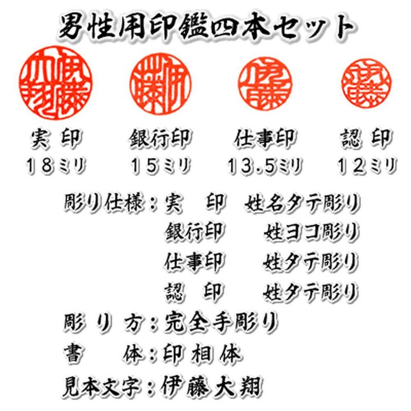 ●男性用実印+銀行印+仕事印+認印の4本セットです。