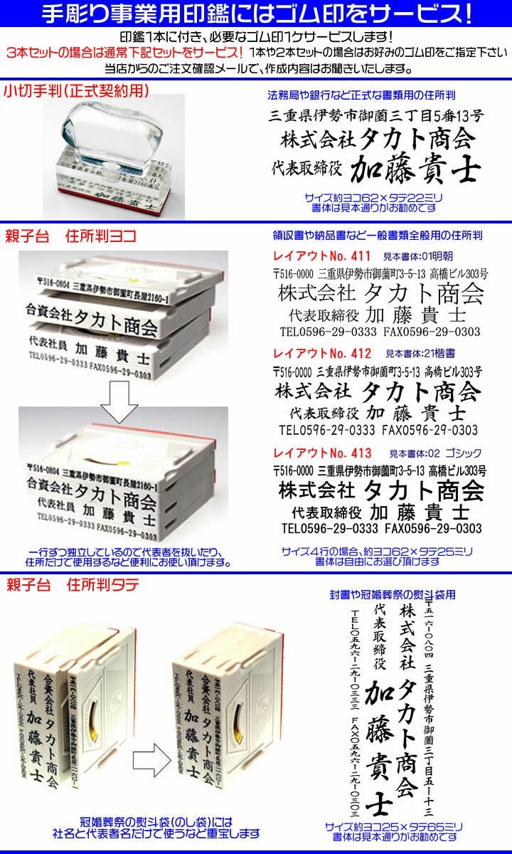 ●ゴム印(親子台住所判4行仕様または正式契約用小切手版)