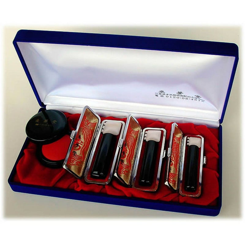 完全手彫り印鑑(印章・はんこ・ハンコ) 黒水牛印材ケース付き印鑑セット