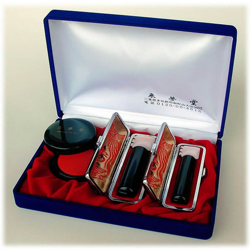 完全手彫り印鑑(印章・はんこ・ハンコ) 黒水牛印材ケース付き印鑑セット