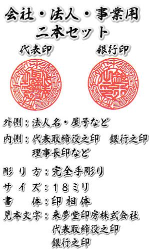 ●完全手彫りの代表印と銀行印の事業用印鑑2本セット