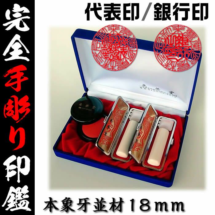 ●完全手彫りの代表印と銀行印の事業用印鑑2本セット